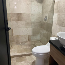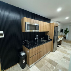 • Escudo acrílico entre huéspedes y personal en principales áreas de contacto.
