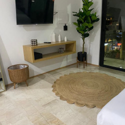 pelo y espejo de tocador, aire acondicionado, ventilador de techo, TV, teléfono, reloj despertador,