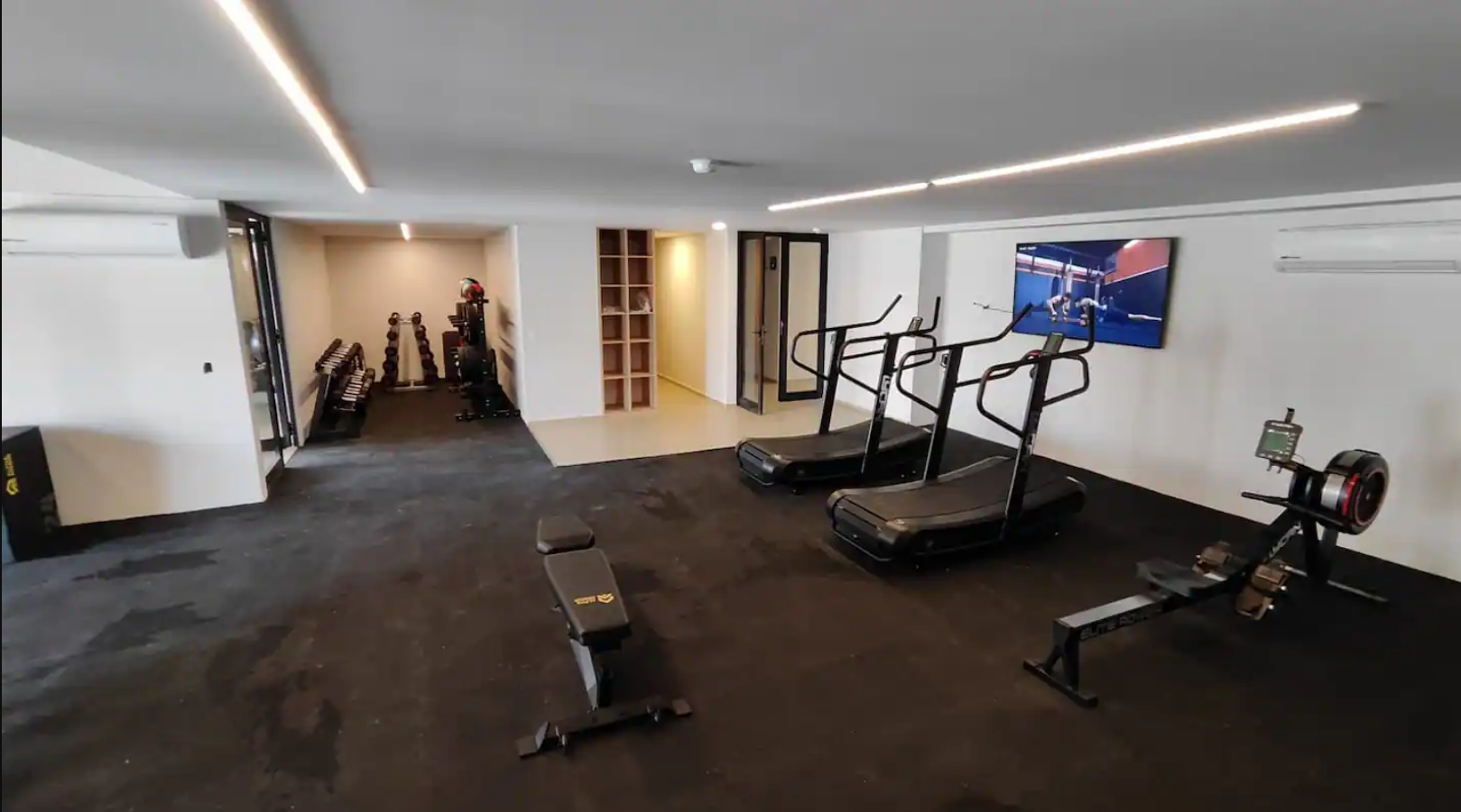 • Equipo para hacer ejercicio: elíptica, mancuernas, bicicleta fija, caminadora, tapete de